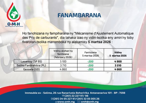 Changement des prix: 05 Mars 2026